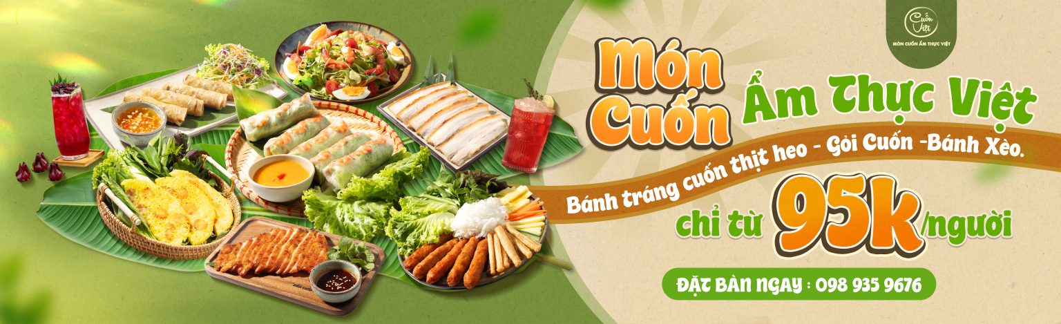 Khám phá hành trình ẩm thực Việt Nam bởi sự tinh tế và độc đáo của những món Cuốn như: Bánh Tráng Cuốn Thịt Heo, Bánh Xèo Miền Trung hay các món Cá Cuốn,… Ngoài ra Cuốn Việt còn còn những món Lẩu vừa ngon vừa cực kỳ hấp dẫn cho những bữa tiếc bạn bè, giá đình và người thân. Cùng bạn bè và người thân quây quần bên những cuốn cuốn thơm ngon, trò chuyện và chia sẻ những câu chuyện thú vị.