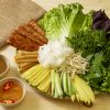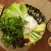 Rau: một đĩa đủ đầy các loại rau sống: xà lách, húng, quế, diếp cá, hành lá, ..